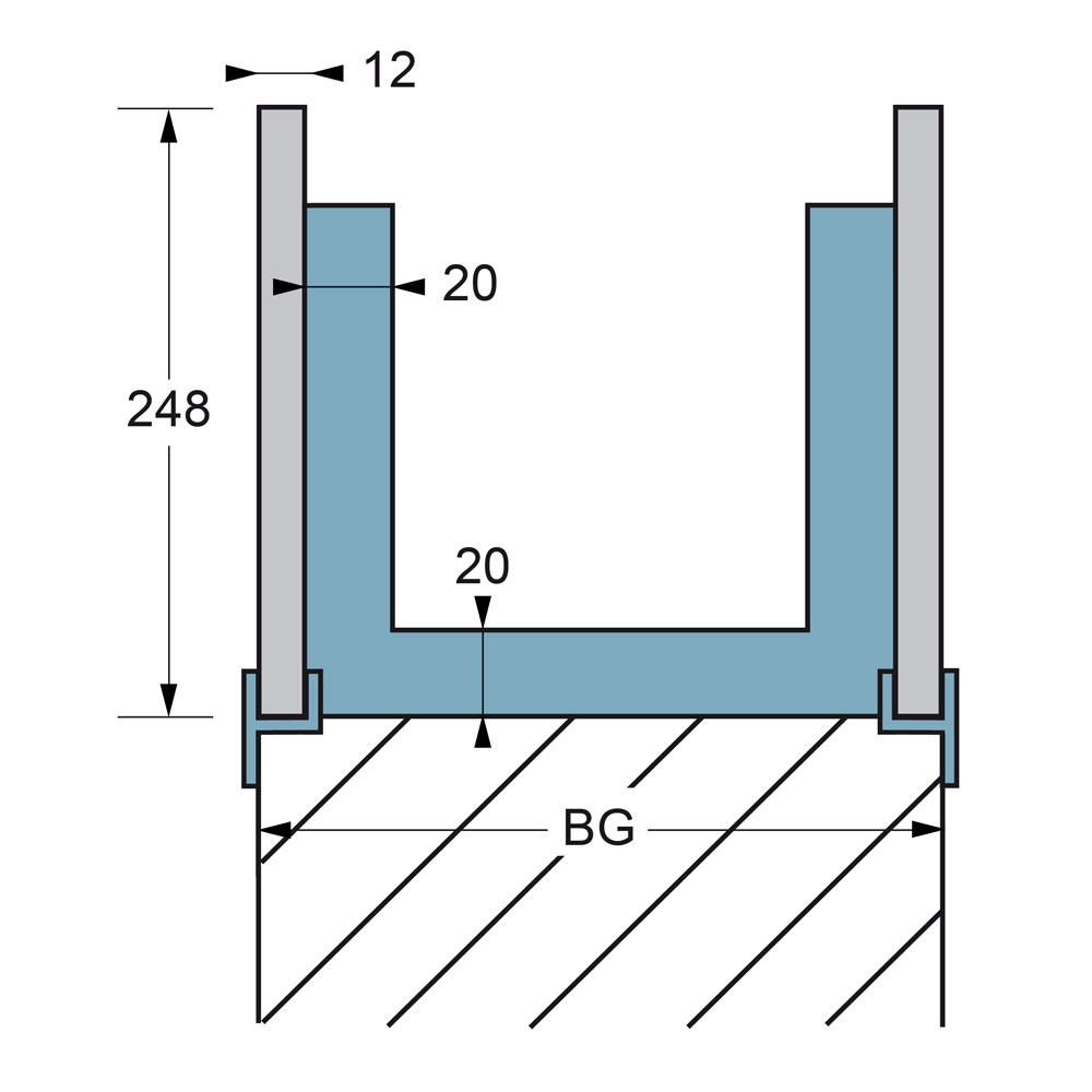 - Standardelementlänge 2.350 mm, H 248 mm (Alternative Abmessungen auf Anfrage)