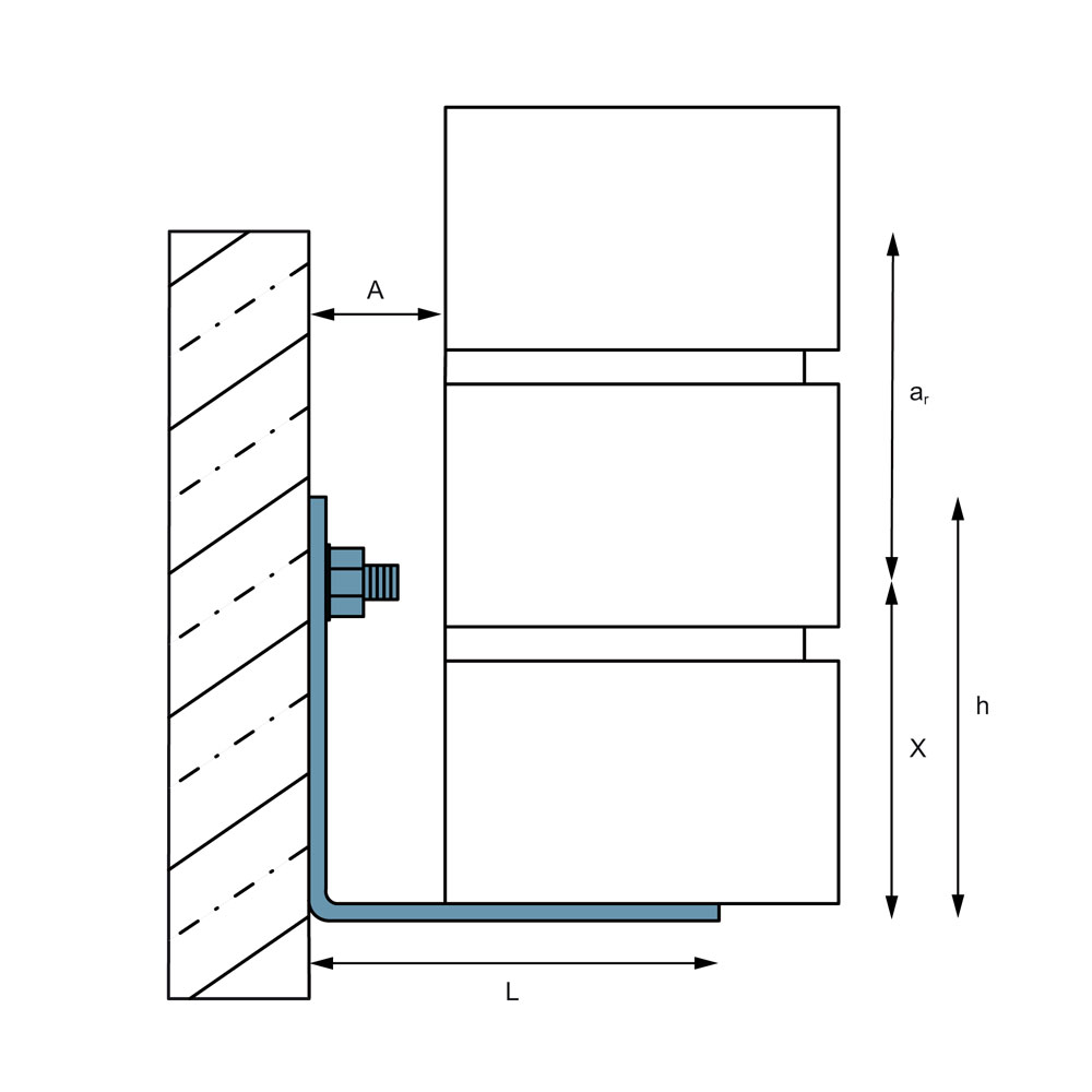 - Für Schalenabstand (A) von 10 bis 40 mm (siehe Zeichnung)