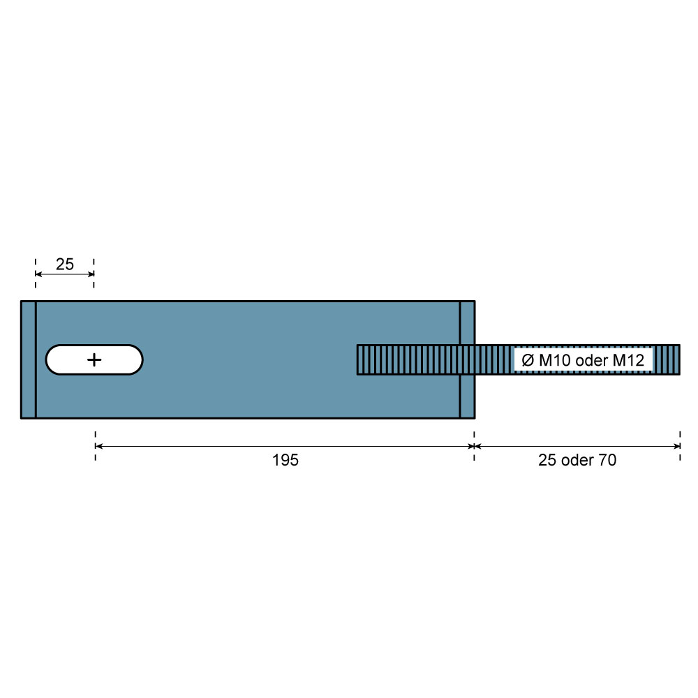 Deckenadapter inkl. Mutter & Scheibe sowie Excenterscheibe KV | ELMCO – KV-GA, ELMCO – KV-GB und ELMCO – KV-FT-ES | Laststufe 3,5 | ELMCO – DA - 3,5 - M 12/70 - 195 | 709002 |