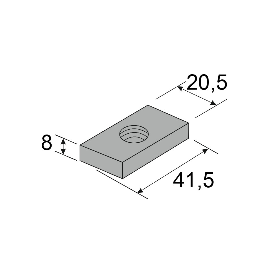 - Gewindeplatten (Schienenmuttern) ermöglichen den Einsatz von Schrauben beliebiger Art mit metrischem Regelgewinde
