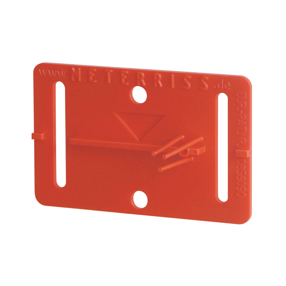 - Meterriss-Plakette ist mit Klebestreifen versehen, sodass sie einfach aufgeklebt werden kann