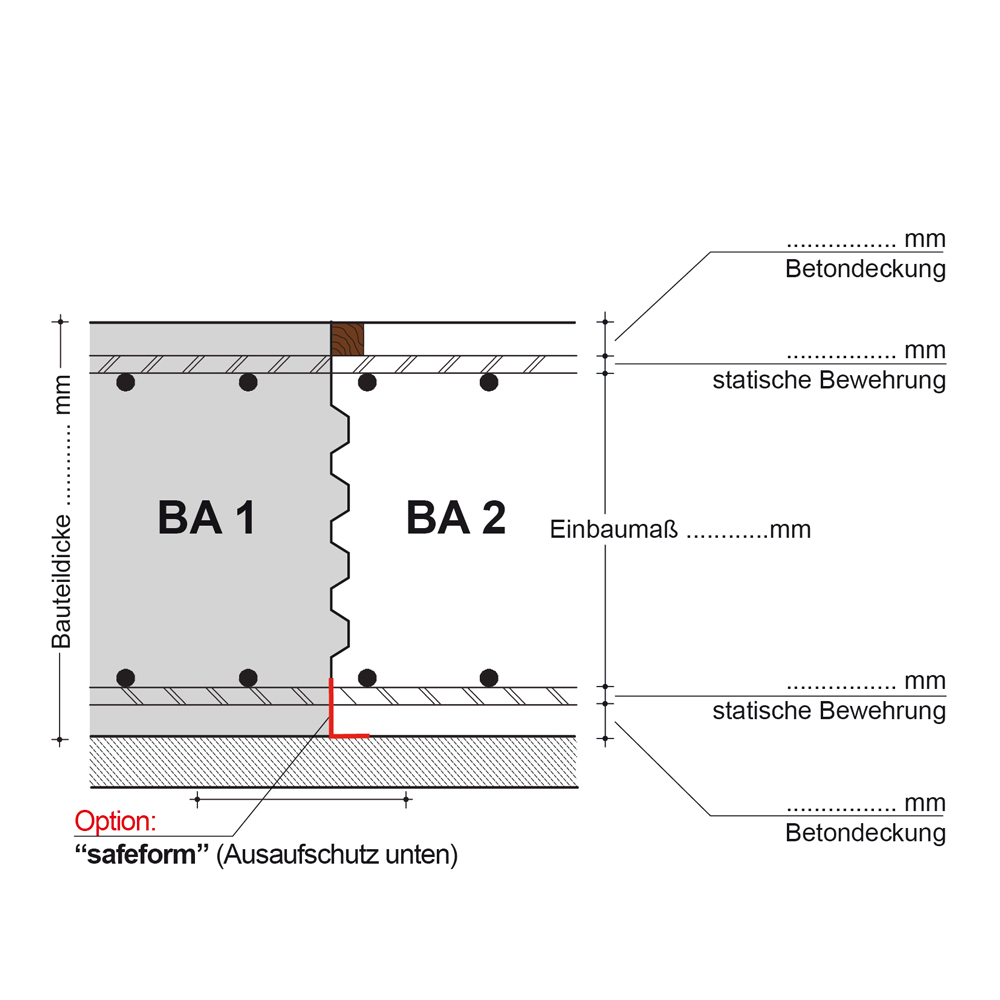 Für Arbeitsfugen in Bodenplatten und Wand als „Verzahnte Fuge“ nach DIN EN 1992-1/NA:2013-04