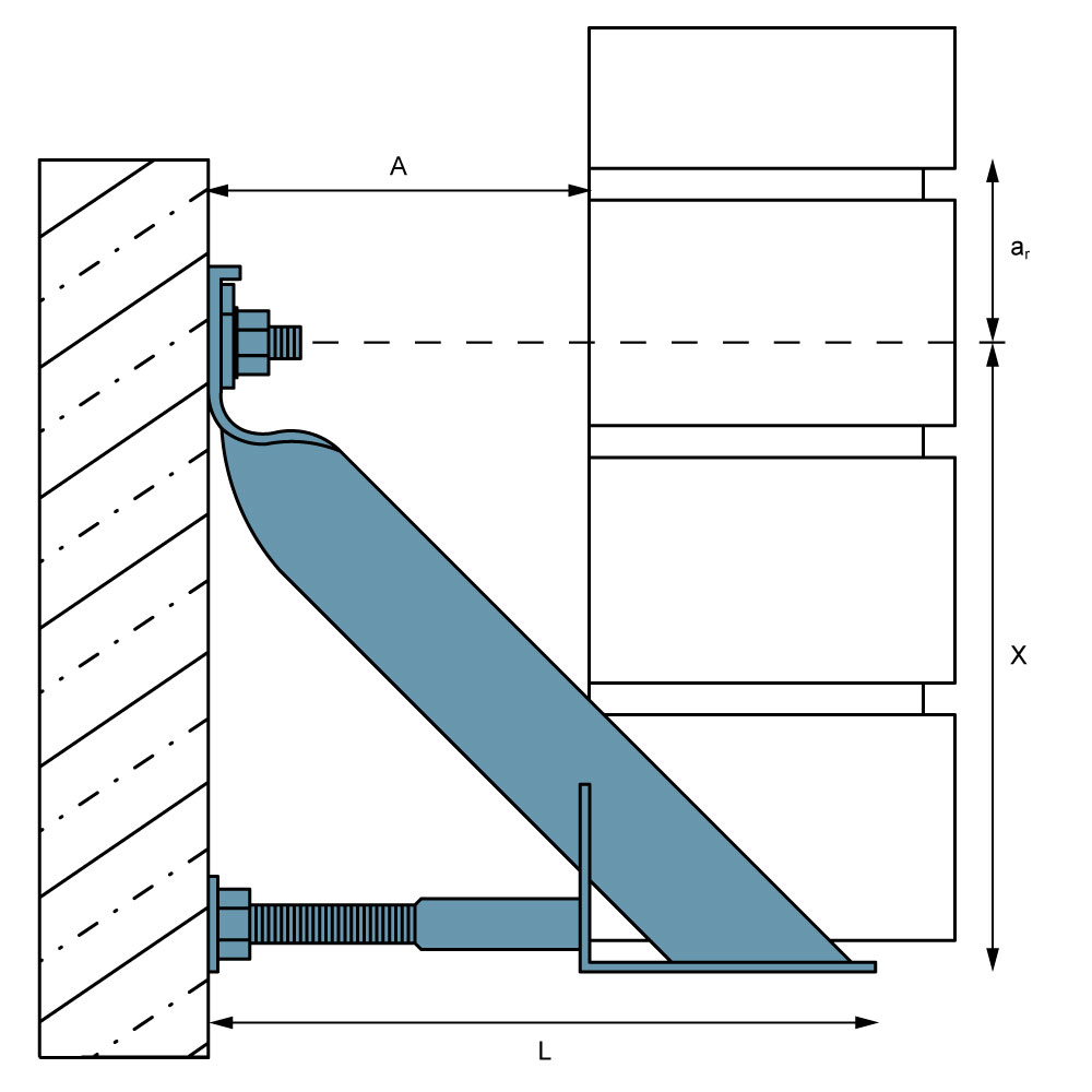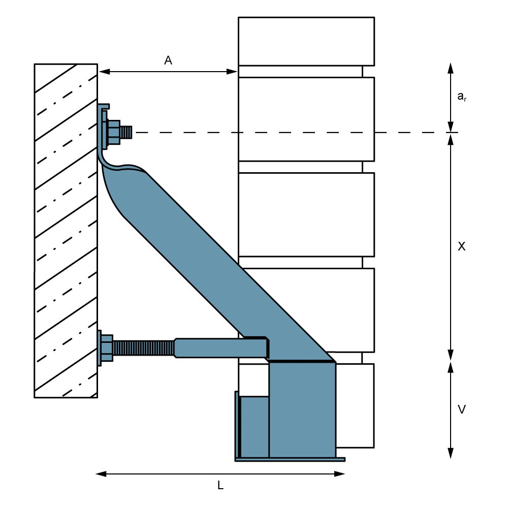Die Winkelkonsolanker ELMCO – W und ELMCO – WS sind durchlaufende, verschweißte Winkelkonstruktionen, die wir speziell für Ihren jeweiligen Anwendungsfall konstruieren und anfertigen. Die Laststufe bzw. Anzahl der Konsolanker und deren Abstände werden durch die Auflast (q) und den Befestigungsgrund bestimmt.