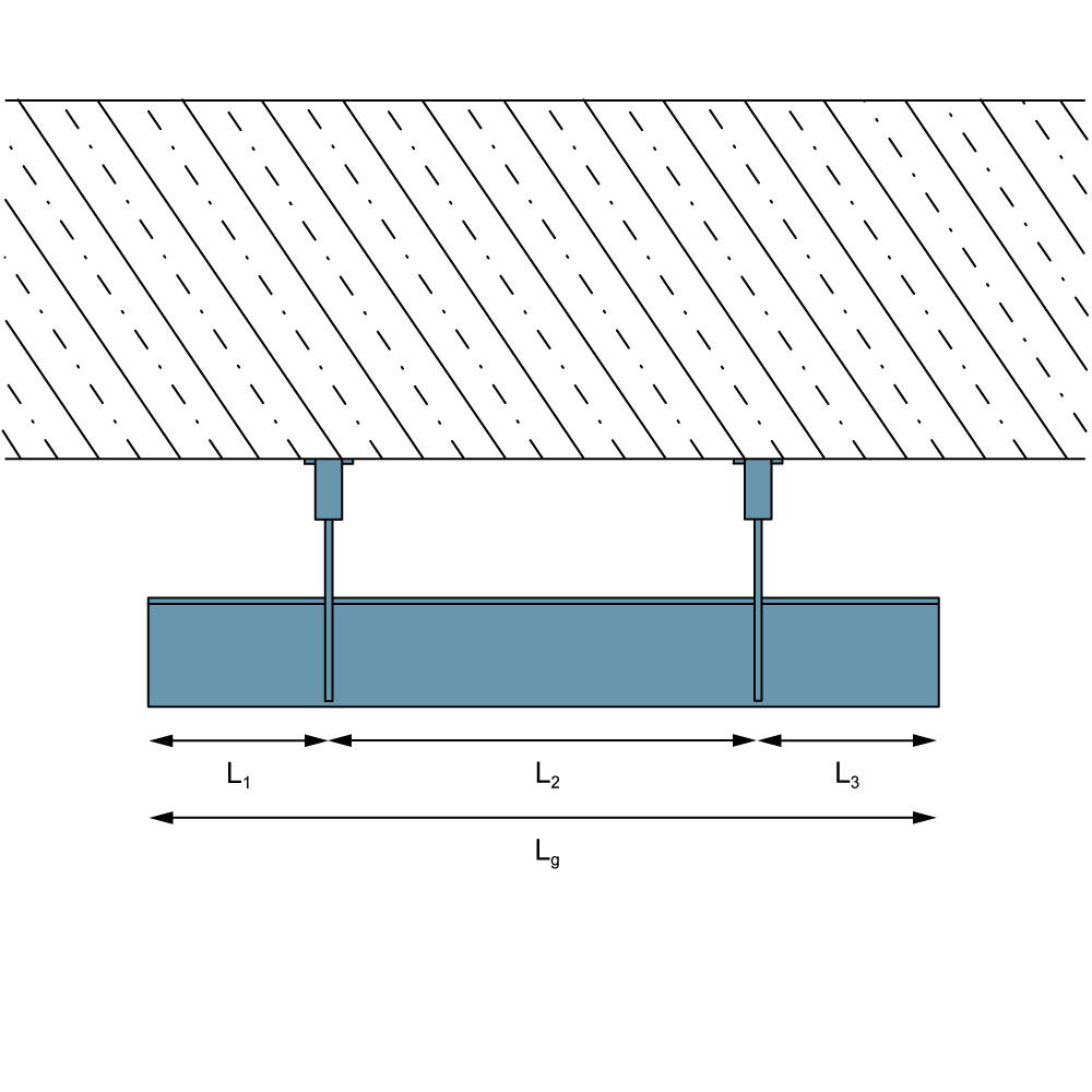 z.B. Lg = 1000 mm (250/500/250 mm)