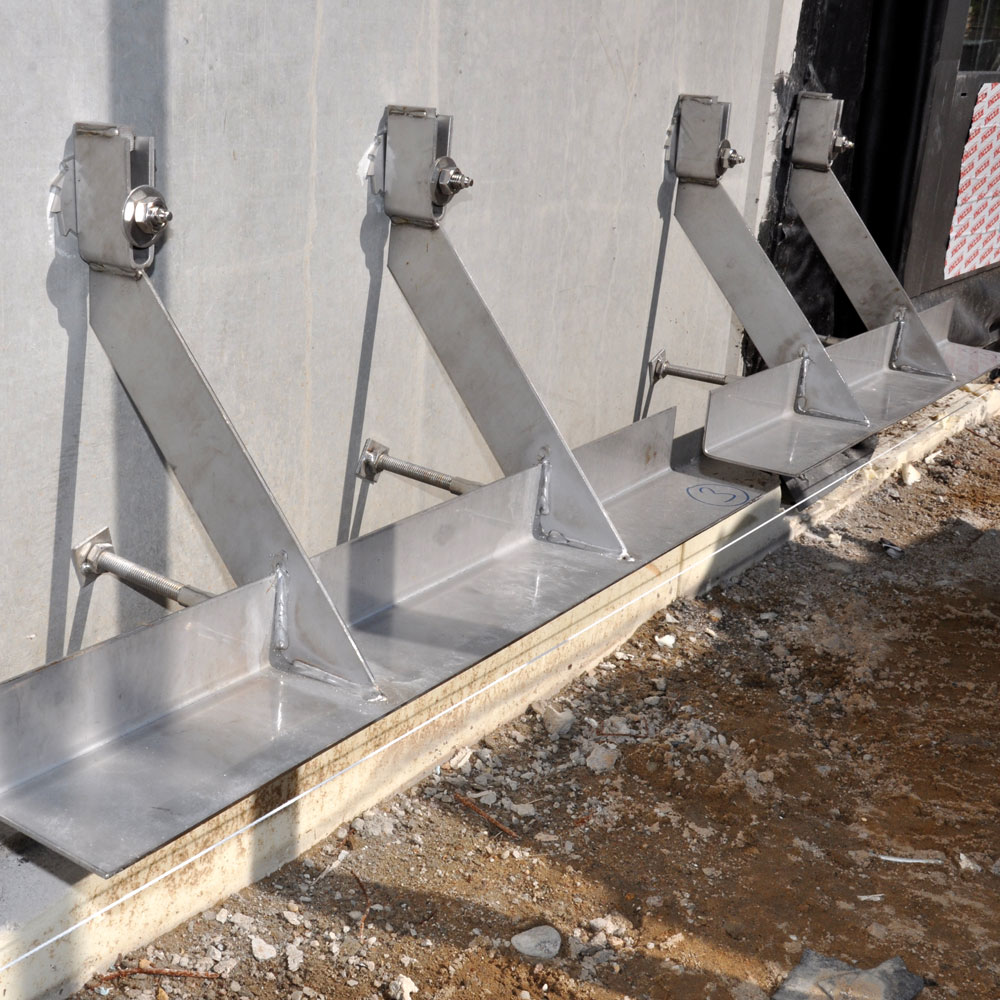 Diese Winkelkonsolanker werden auch als Ausführung für die ”sichtbaren Abfangungen über Öffnungen“ eingesetzt. Für diesen Zweck kann der Winkel auf der später sichtbaren Unterseite in Längsrichtung geschliffen werden. Bitte führen Sie diesen Wunsch in Ihrer Bestellung separat auf.
