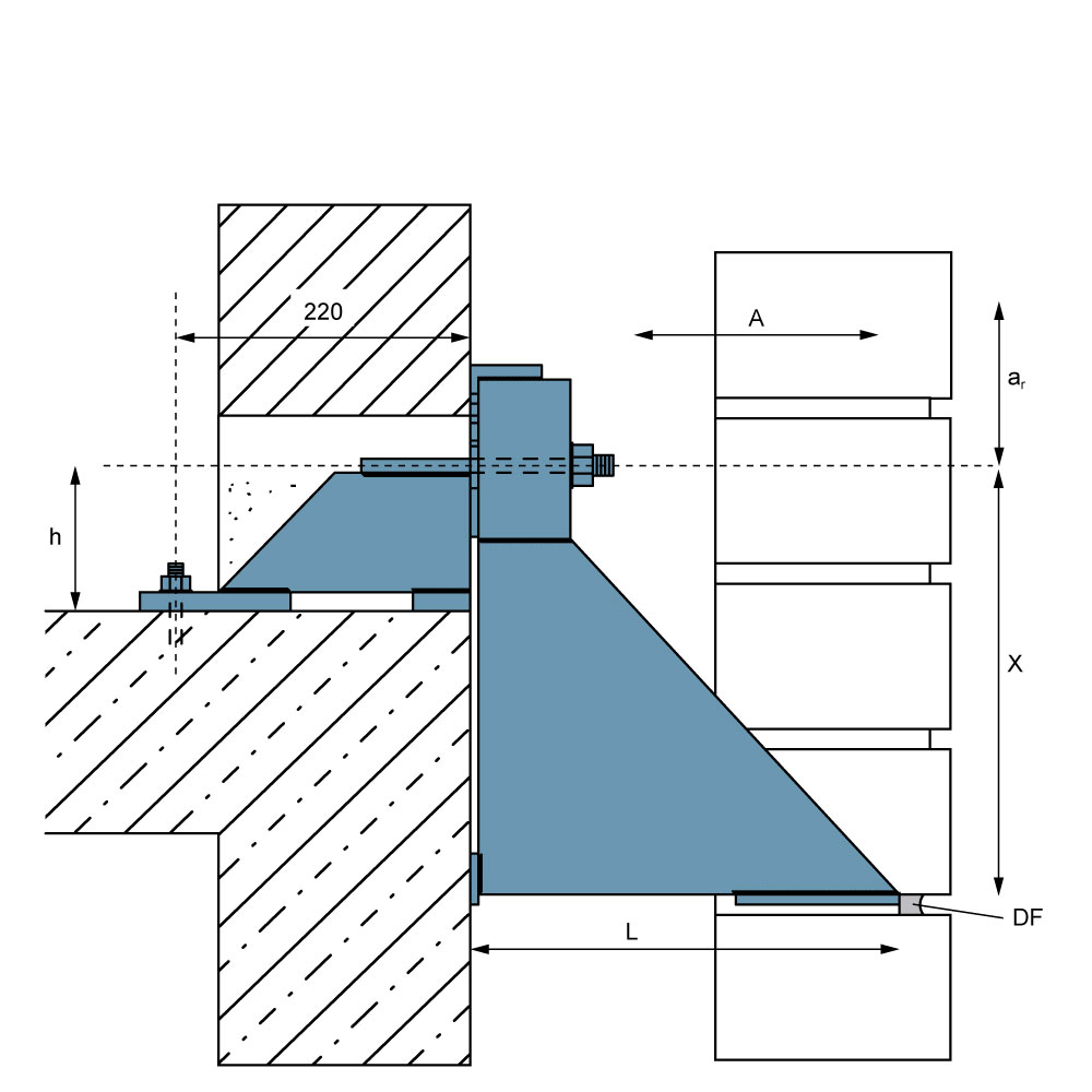 - Laststufe 7,0 kN (Befestigung gemäß statischem Nachweis)